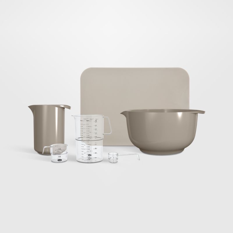 Outfit your kitchen in Scandi style with this useful starter bundle. Epitomizing the usefulness and timelessness of Danish design, the warm beige set measures, mixes, preps and serves. Use the bowl to mix batter or serve salads and the mixing pitcher to blend marinades or serve sauces. The measuring spoon, cup and jug portion out wet and dry ingredients in ounces, milliliters, cups, teaspoons and tablespoons. With clean lines and fresh colors that set it apart, this elegantly neutral set makes a thoughtful housewarming gift, especially for first-time apartment dwellers or newlyweds.