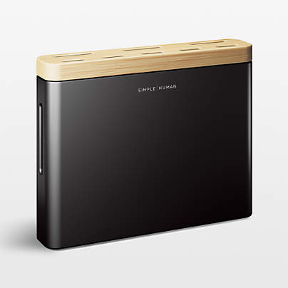Crafted of matte black stainless steel to coordinate with your appliances, this fingerprint-proof dish rack dries dinnerware, flatware and up to four extra-large wine glasses in clean, modern style. The silicone-capped wire rack holds dishes firmly in place without scratching, and rubber feet keep the rack right where you want it. Finished with a coating that prevents buildup and water spots, the inner plastic tray dries quickly, while the draining spout rotates 360 degrees to suit your kitchen setup.