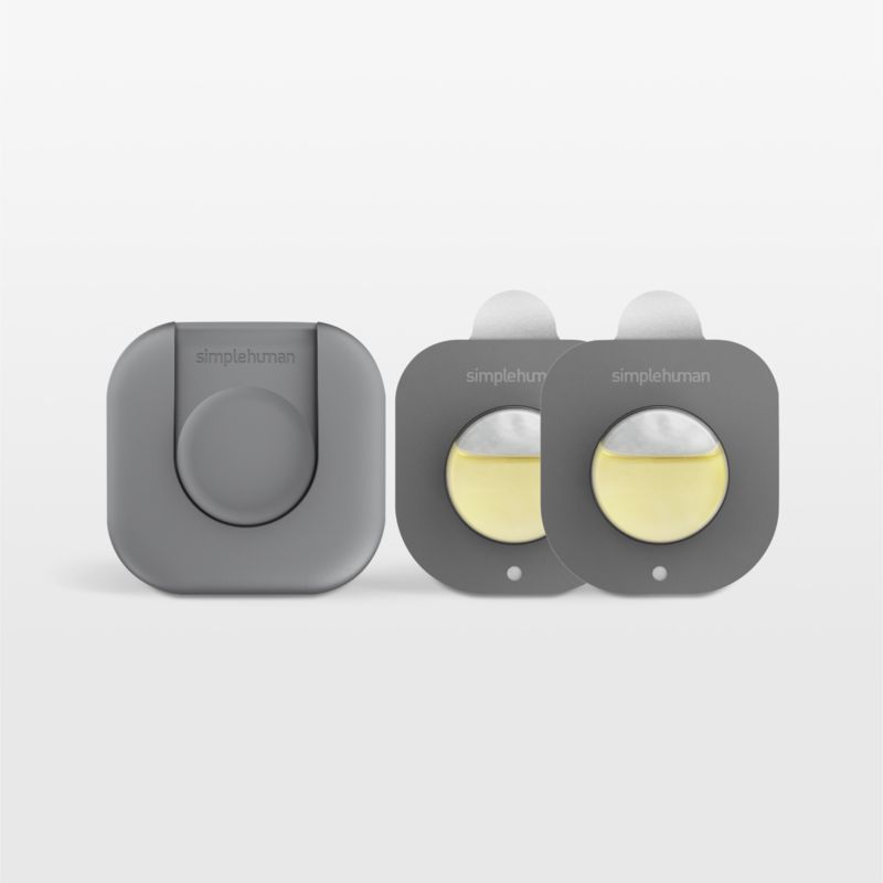 Neutralize odors in your trash can with this easy-to-use starter pack. Simply attach the grey pod holder under the lid of your simplehuman trash can (sold separately) using the adhesive strip and slide in an odorsorb pod. Made with a microporous membrane and natural plant-based oils, the pod consistently neutralizes odors for 45 days. When it's time for a replacement, the pods swap out easily. This starter pack includes one holder and two odorsorb pods.