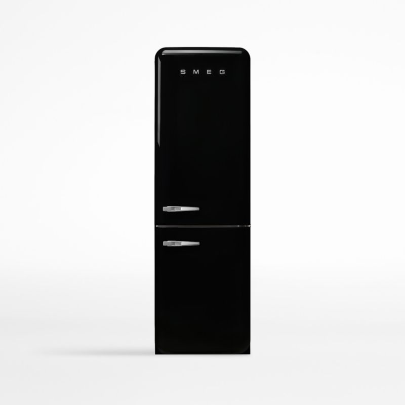 Inspired by classic mid-century appliances, the SMEG refrigerator brings a charming retro design to the contemporary kitchen. The delightfully throwback refrigerator features rounded corners, a glossy black exterior and chrome accents. Inside, the refrigerator door opens to two adjustable glass shelves, three adjustable in-door bins and produce drawer and cooler drawers with sliding glass covers. The bottom freezer is frost free and features three drawers. Designed to make efficient use of kitchen space, the freestanding refrigerator looks great at any angle with doors that open to the right to accommodate your kitchen layout.
