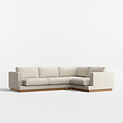 While you sink into the laid-back comfort of our Tidal sectional, enjoy the feel-good vibes of knowing that the sofa's upholstery includes yarn made from recycled ocean plastic. The durable, easy-care fabric indulges with a soft micro-chenille weave that perfectly complements the deeply cushioned seat and pillow backs that provide just the right amount of recline. Combining an armless sofa and left- and right-arm sofas, the three-piece sectional features set-back arms and exposed seat decks that create a stepped look with an ash veneer plinth base that lets the sofa float in a room. Though Tidal's stocked upholstery contains a percentage of upcycled ocean plastic, it has a very soft and inviting hand that begs to be touched.