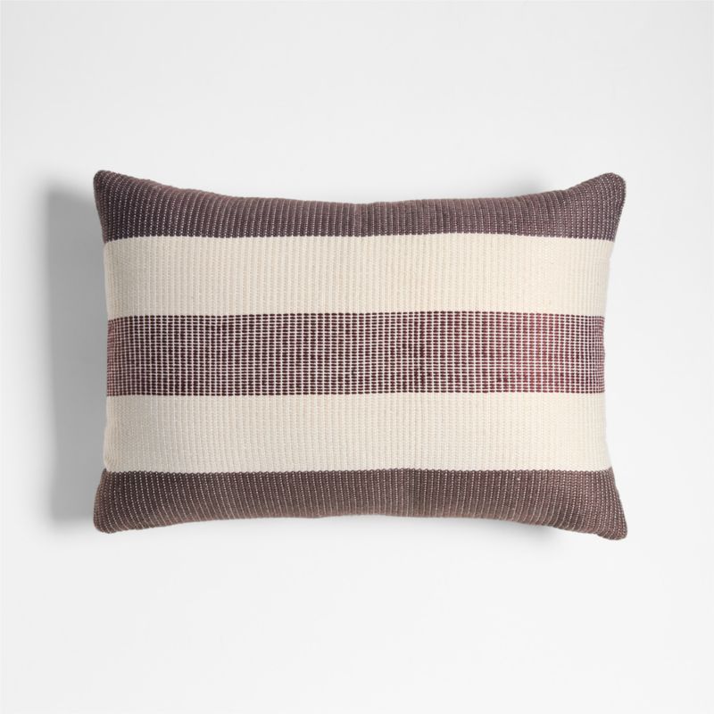 Broad bands of tonal chestnut-inspired red and ivory add graphic pop and touchable texture to this outdoor throw pillow. Woven of recycled fibers, the lumbar pillow layers effortlessly with others in a warm, earthy palette to refresh your living room, porch or patio.