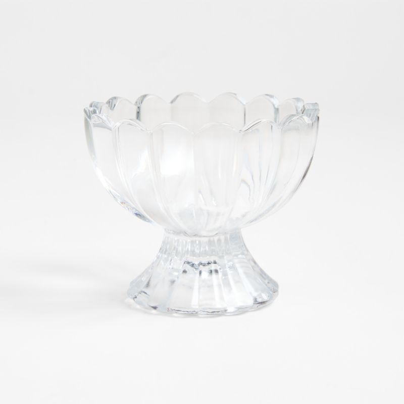 Unabashedly old-time looks put the social in serving ice cream. Everyone's favorite frozen treat gets star treatment in a graceful scalloped dish crafted of molded glass. Also great for candies or nuts.