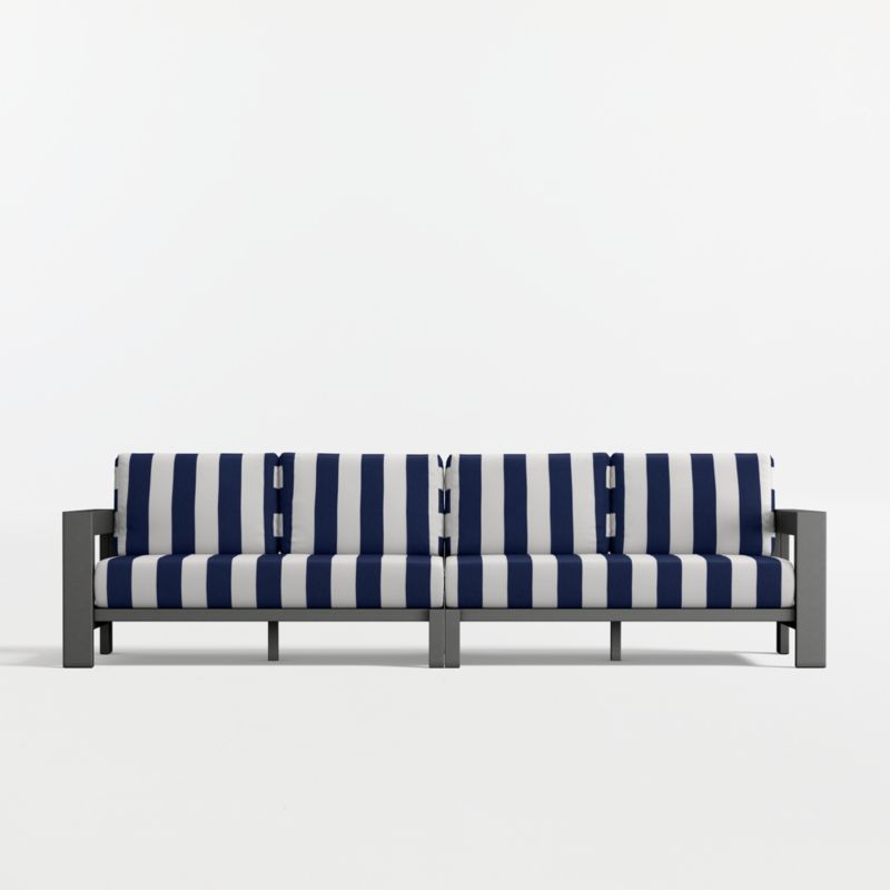 Walker 63" Metal Outdoor Loveseat with Navy and White Cabana Stripe Sunbrella ® CushionsWalker 90" Metal Outdoor Sofa with Navy and White Cabana Stripe Sunbrella ® CushionsWalker 117" 2-Piece Metal Sectional Sofa with Navy and White Cabana Stripe Sunbrella ® Cushions