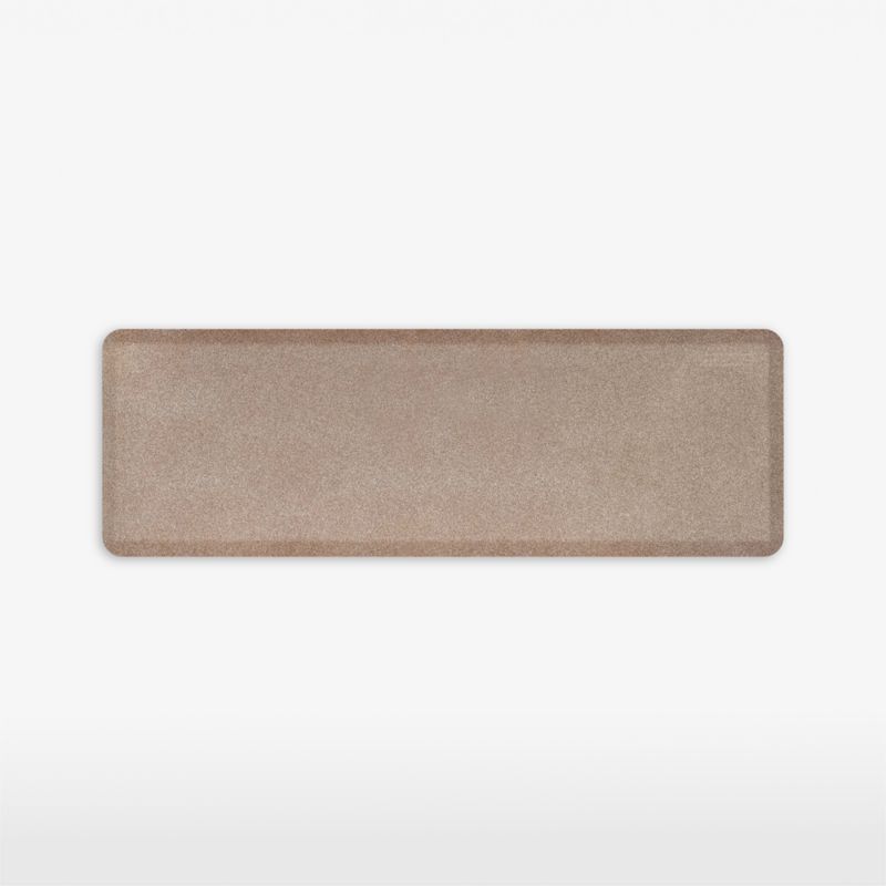 Finished with the elegant look of granite in metallic-flecked tan, this sand-hued mat helps eliminate fatigue as you chop vegetables, whip egg whites and wash dishes. Thick and supportive, the mat helps prevent foot, knee and back pain so you can clean and cook in comfort. Thanks to its no-trip beveled edges, non-slip surfaces and one-piece construction, the mat also creates a safe kitchen workspace. The puncture-proof, heat-resistant and anti-microbial mat cleans up easily with a quick spot clean, sweep or mop.