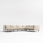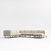 Modern, sophisticated and undeniably inviting, our Wells U-shaped sectional tucks plump cushions onto a slim frame supported by sustainably sourced solid wood legs with a natural finish. Low decks allow plenty of room for indulgent seat cushions that encourage you to linger. Tailored with top stitching and French seams on the cushions and a crisp micro-flange outlining the frames, the soft twill fabric suits active family life and cleans up beautifully. Joining a left-arm chaise, corner, armless sofa and right-arm sofa, our Wells four-piece sectional is a Crate & Barrel exclusive.