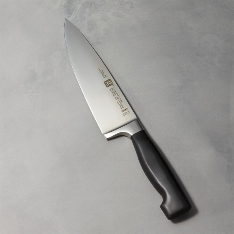 Forty years ago, Zwilling J. A. Henckels revolutionized the standards for top-quality knives with the introduction of the seamless synthetic handle. Sitting comfortably in the hand, this sturdy, heavy chef's knife has a broad, strong blade and fine cutting edge for chopping herbs, cutting vegetables, slicing and dicing fish and meat. Forged from a single piece of steel the knife is hand sharpened and polished, and perfectly sized and weighted for all kinds of cutting tasks.